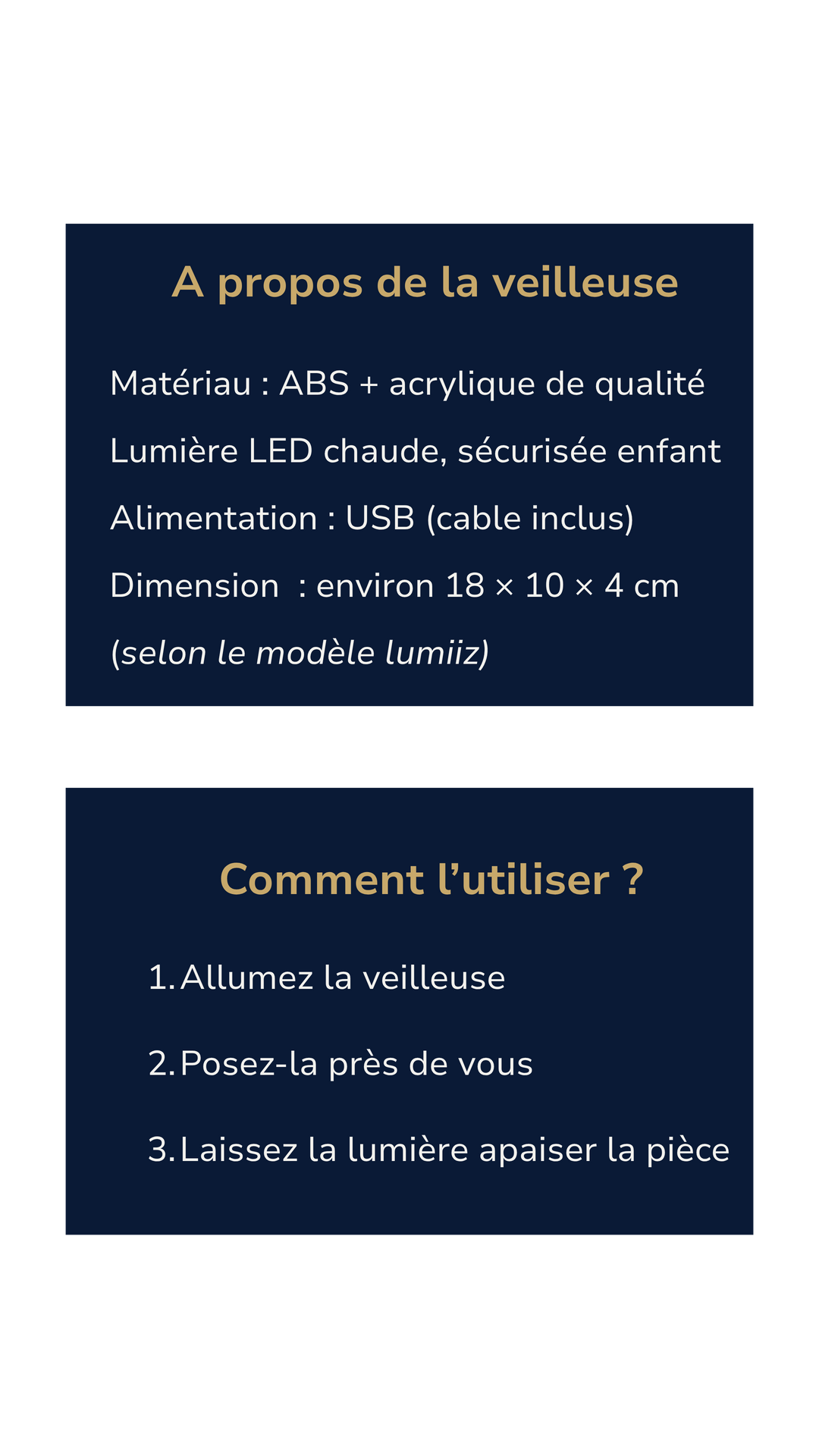 J’ai acheté la veilleuse Lumiiz pour la déco de mon salon et j’en suis absolument ravie. La lumière est douce, élégante, elle crée une ambiance cosy dès qu’on l’allume. C’est devenu ma petite touche chaleureuse du soir… je l’adore.